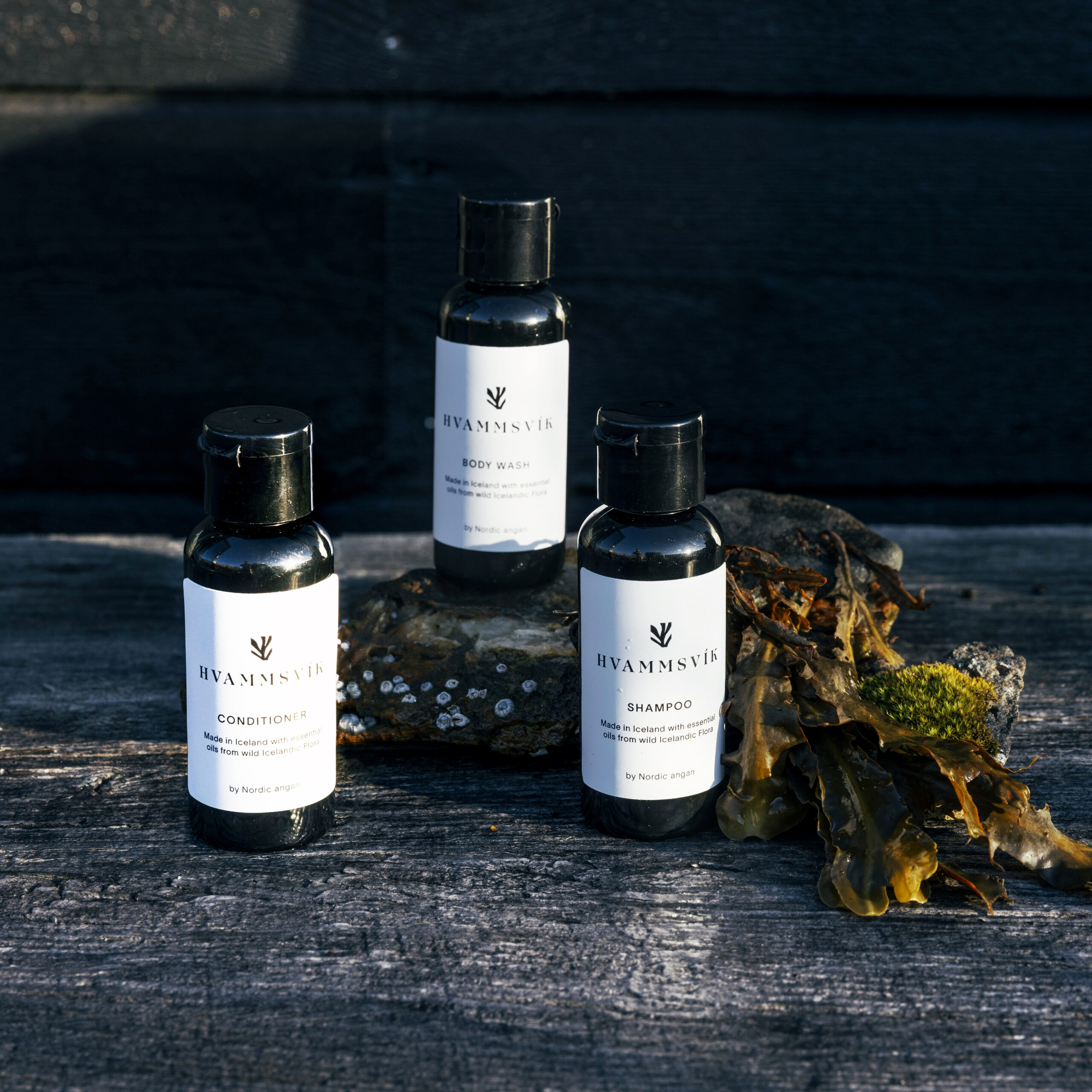 The Hvammsvík Travel Kit comes in a zipped travel pouch.